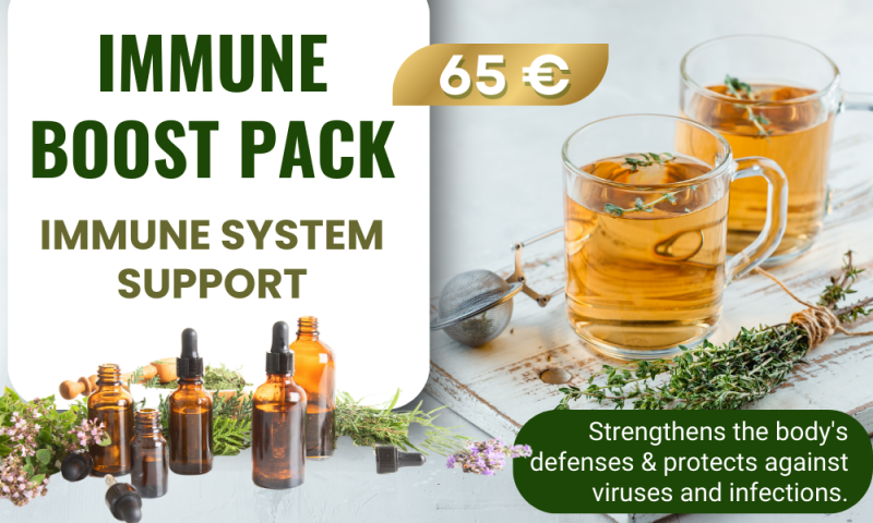 The Immune Boost Pack is a powerful combination of natural herbs and extracts that enhance the body's defenses, helping to combat viruses, bacteria, and inflammation. It includes Elderberry Tincture, Rosemary Tincture, Rosehip Tincture, Cistus Herb, Nettle Herb - ingredients rich in antioxidants, vitamins, and minerals that support the immune system and promote overall health.